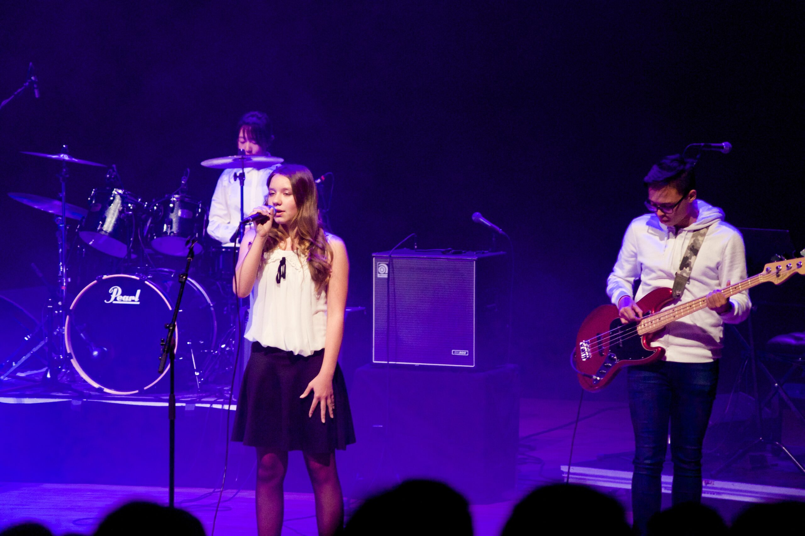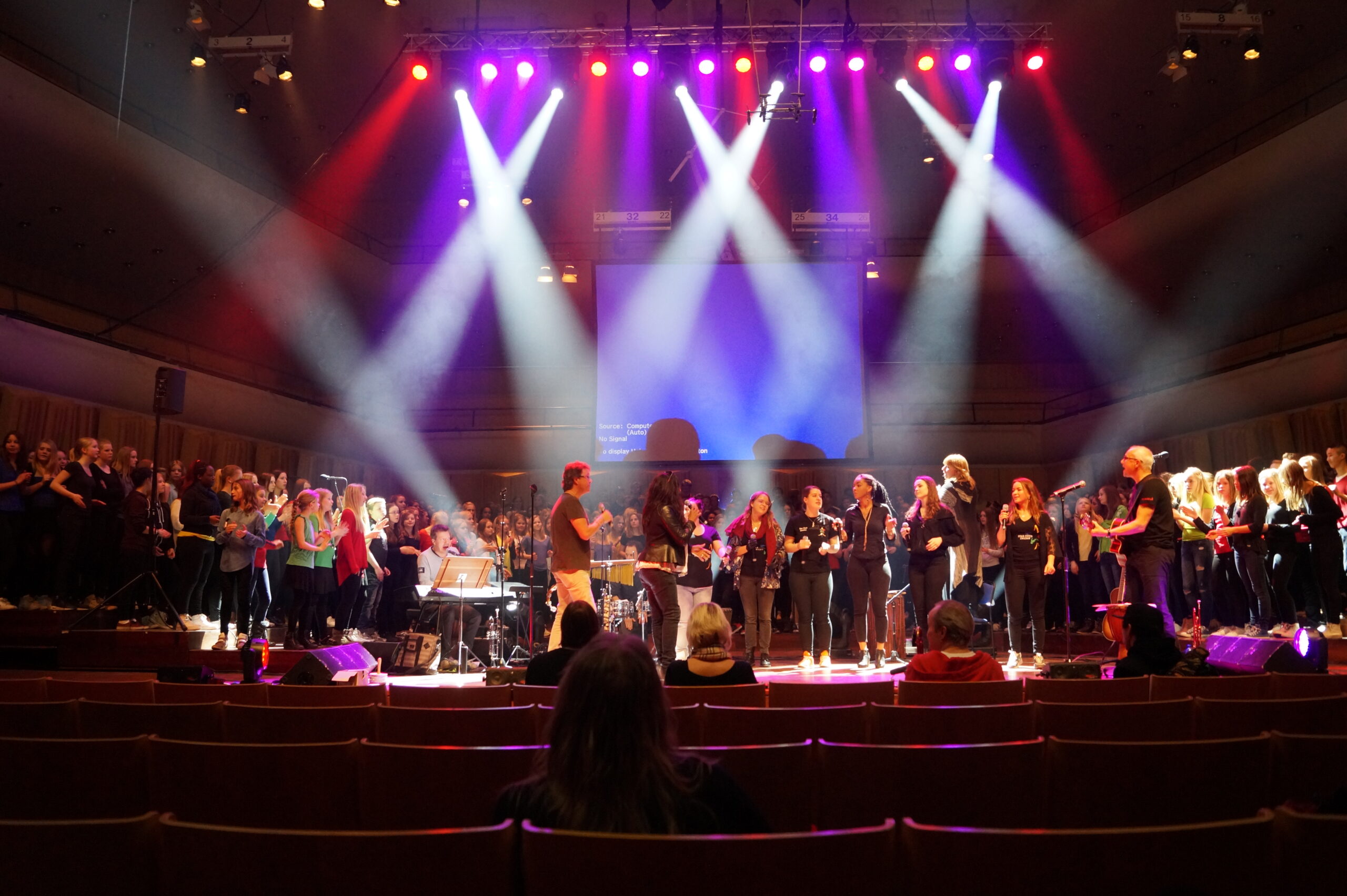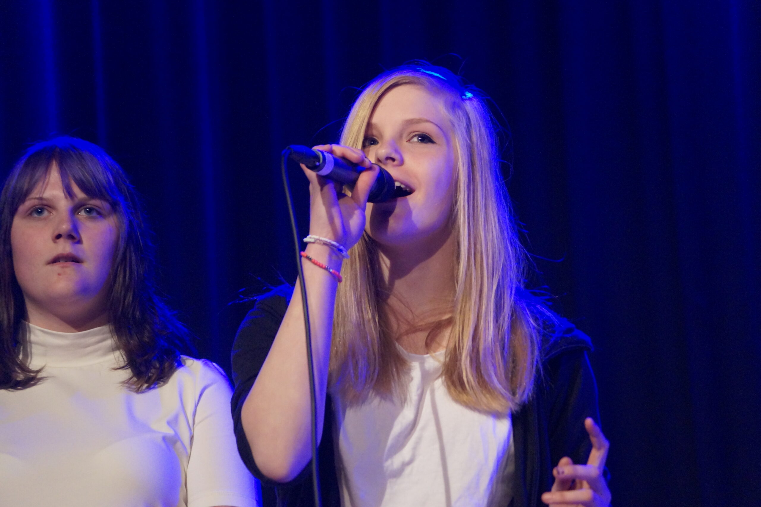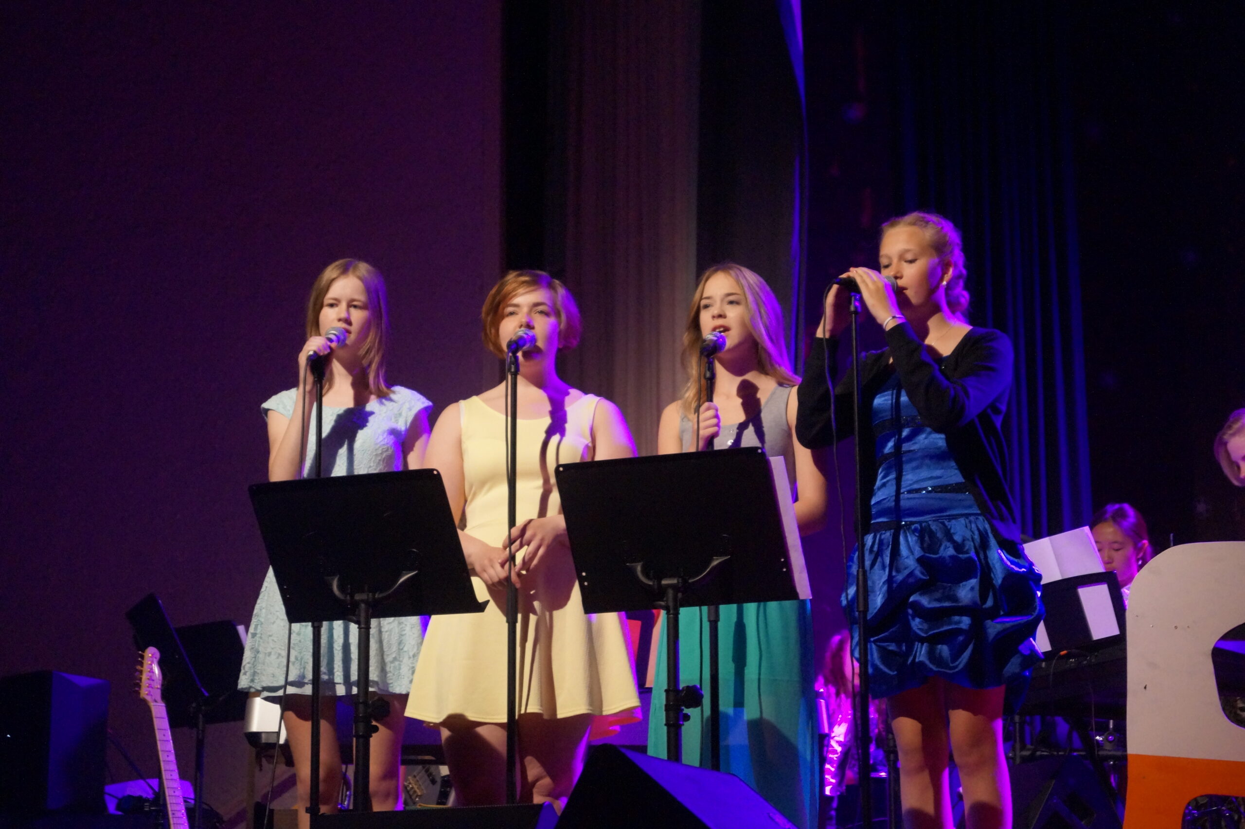 En del av undervisningen leder till musikaliska framträdanden i ensemble, solosång och i kör. Varje år sätts en större scenproduktion upp i samarbete med de andra estetiska profilerna teater, dans och konst där arbete med sceniskt framträdande i sång och ensemblespel är viktiga delar samtidigt som musikens estetiska uttryck tillsammans med andra estetiska uttrycksformer visualiseras. Du får lära dig hur arbetsprocessen ser ut från färdig idé till färdig föreställning med repetitionsarbetets olika stadier samt samverkan mellan dans, koreografi, scenografi, rekvisita, kostym, smink, ljud och ljus.