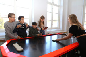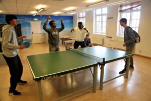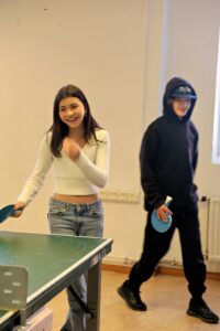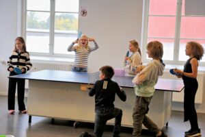 Rastverksamhet – På rasterna finns möjlighet till olika sorter av aktiviteter både ute och inne. Det finns pingisbord och biljardbord och utrymmen med bord, stolar och soffor för samtal och sällskapsspel. På skolgården finns möjlighet för diverse utomhusaktiviteter med såväl bollplaner, klätterställning och gruppgungor och emellanåt går vi till Rinmansparken för ytterligare lek och rörelse.