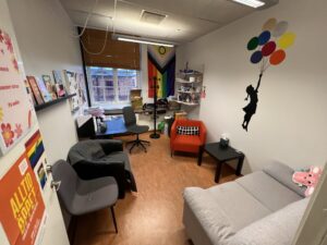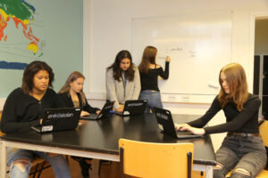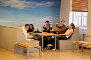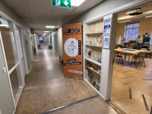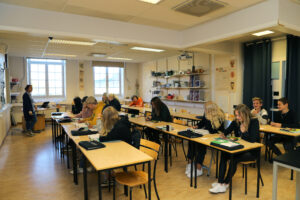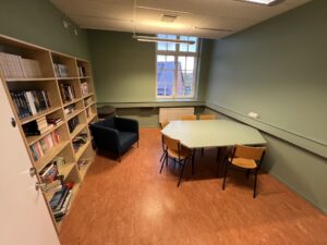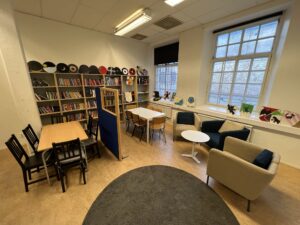 Bibliotek – På skolan finns ett bibliotek med både skönlitteratur och fackböcker.