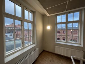Våra lokaler är fördelade på två våningsplan och med två gångtunnlar över Gamla tullgatan. Byggnaden är försedd med spröjsade fönster i gammaldags stil som ger stora ljusinsläpp och skapar en öppen och charmig känsla i varje klassrum.