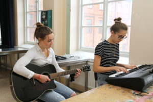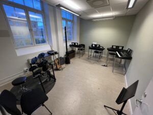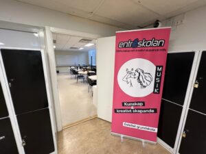 Förutom traditionella klassrum är lokalerna specialanpassade för Entréskolans estetiska profiler med bland annat danssal och teaterscen.